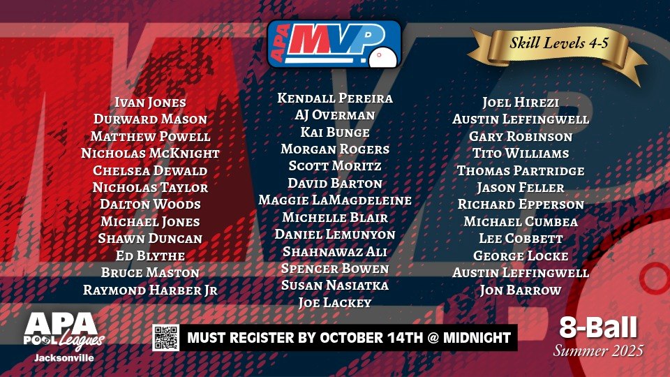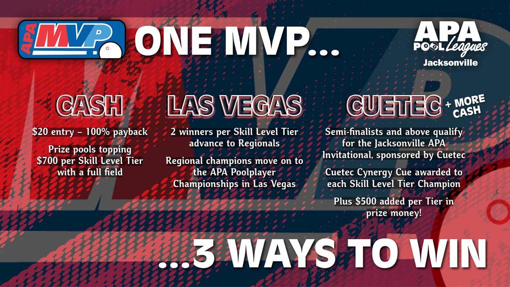 From division recognition… to cash payouts… to Regionals and Nationals… the MVP path could lead you all the way to Las Vegas—with a new cue and pockets full of cash.