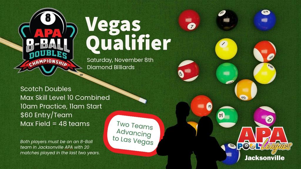 , Jacksonville APA’s 8-Ball Doubles Vegas Qualifier will send